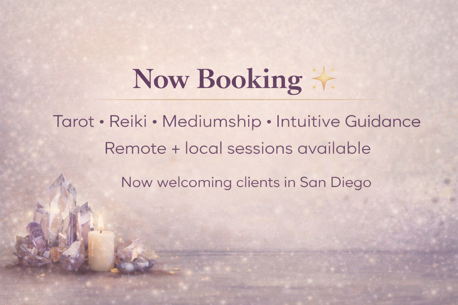 Tarot, Mediumship, Reiki, and intuitive guidance for clarity, healing, and soulful connection.